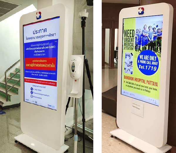 La signalisation numérique CAYIN a installé quinzejoueurs SMP-2100, treize joueurs SMP-2200, un serveur CMS-20, trois écrans HTV 43", treize écrans HTV 55", un écran HTV 65" et quatre moniteurs muraux VDO WALL 55" dans les ascenseurs, les murs vidéo et les kiosques. Cette installation massive offre à l'hôpital de Bangkok Pattaya la possibilité de changer divers affichages, des promotions au contenu utile et aux actualités sanitaires, en passant par les services hospitaliers, tout en renforçant les relations publiques en présentant une image professionnelle, high-tech et moderne au public.