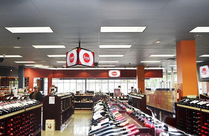 Le lecteur de signalisation numérique SMP-WEBDUO est installé dans le bureau du directeur pour contrôler les six écrans. Pour maximiser l'exposition, les écrans sont répartis dans tout le magasin de 8000 pieds carrés : un à l'entrée, un dans une salle de vin, un au-dessus des caisses et trois écrans formant un triangle au milieu du magasin.