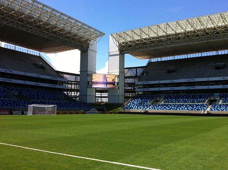 Dans le pays hôte de cette année, le Brésil, un total de 64 matchs sont joués dans ses 12 villes. L'une des enceintes à Cuiabá, le stade Arena Pantanal, a été achevée en avril et a servi de lieu pour de nombreux matchs lors de la Coupe du Monde de la FIFA 2014. Le stade est également appelé le stade “O Verdão” (le grand vert) car du bois recyclé a été utilisé pour sa construction. La qualité du sol et de l'air a été surveillée avec précision pendant la construction, permettant au stade de réaliser la durabilité et la responsabilité environnementale. Ce stade respectueux de l'environnement peut accueillir environ 44 000 personnes et pourra également répondre à différents besoins lors des Jeux olympiques de 2016.