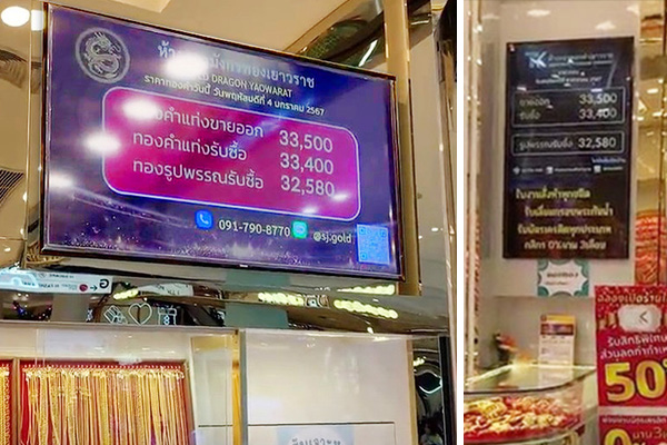 Gold Dragon Yaowarat à Bangkok a transformé le commerce de l'or en intégrant une signalisation numérique en temps réel pour les prix de l'or avec CAYIN Technology et DmaSStech, améliorant l'expérience client et l'efficacité.