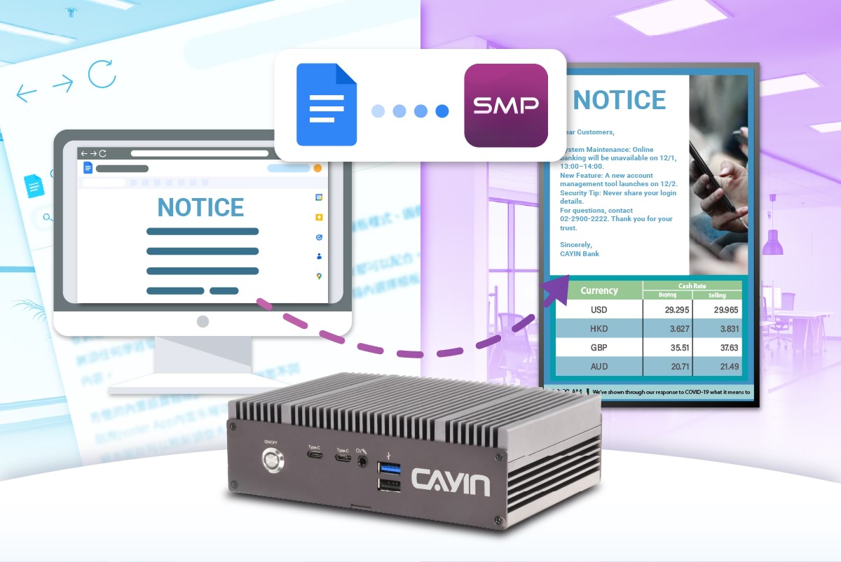 CAYIN Technology dévoile son dernier lecteur de signalétique numérique SMP-2400, révolutionnant la gestion de contenu grâce à une intégration transparente avec Google Doc. Les utilisateurs peuvent synchroniser instantanément les mises à jour de Google Docs vers leurs écrans numériques.