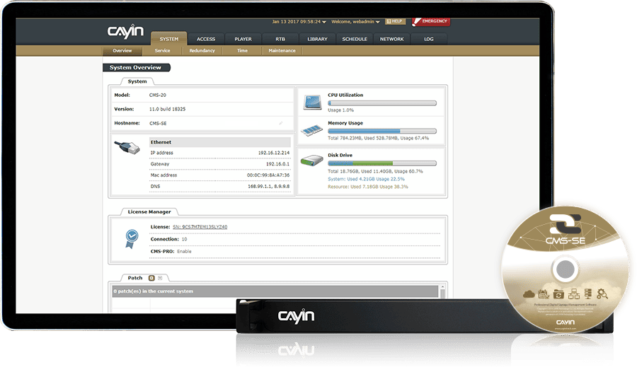 CAYIN Technology understands the needs of different digital signage users and has developed complete integration product lines for all. Users will be able to make customized adjustments and coordinate seamlessly with either a single or multiple media players located across one or multiple locations. CAYIN products work together to get the target message across and allow effortless management of media players and systems in the process.